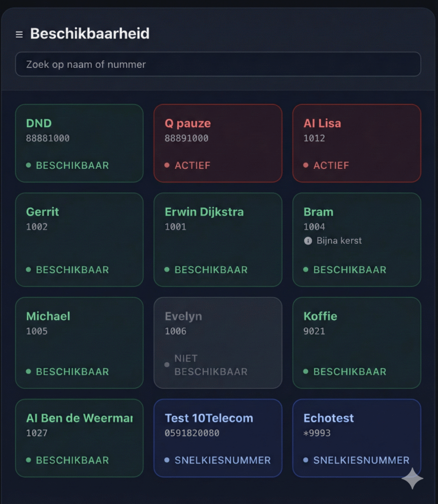 Via de browser zie je direct in één oogopslag of je collega’s aan het bellen zijn of dat ze de status “Niet storen” aan hebben staan. Ook kun je op je collega’s klikken om ze te bellen.