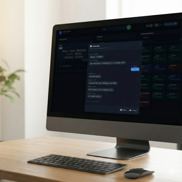 Direct vanuit je browser, met meerdere lijnen en live transcriptie.