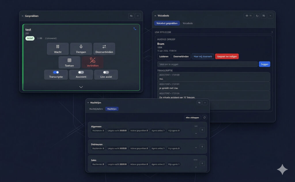 Je schakelt tussen gesprekken, verbindt door en werkt samen met collega’s – allemaal in één overzichtelijk scherm.